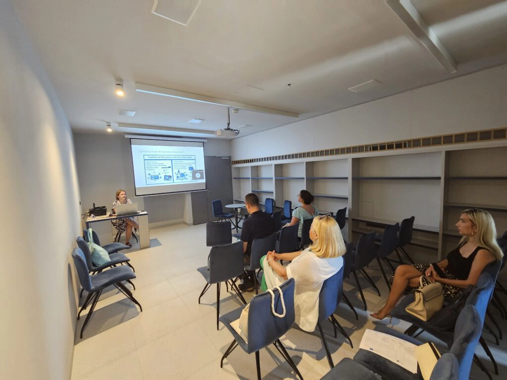 Drugi dan je doc. dr. sc. Suzana Tomaš pričala o digitalnim kompetencijama i e-učenju te načinu na koji bi trebalo vrednovati uspjehe studenata. Na kraju radionice su odrađene vježbe u obliku kviza.